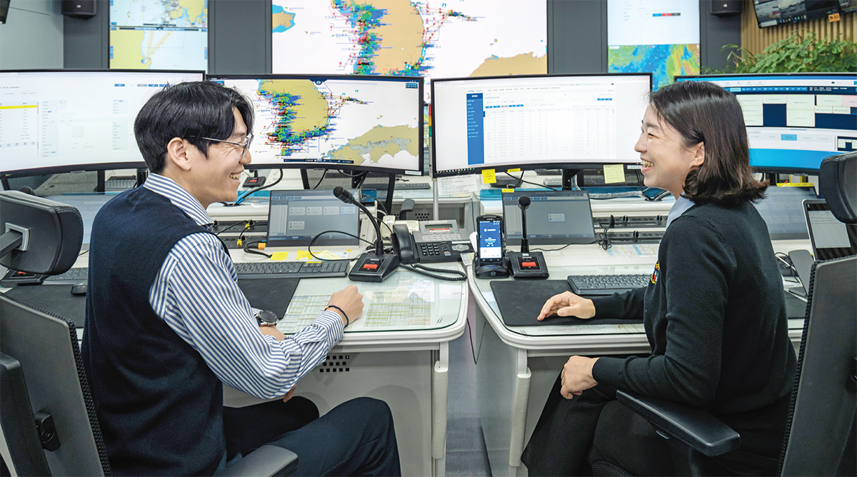 정이 한국해양교통안전공단에 운항관리자 경력직으로 입사해서 올해로 10년째 일하고 있는데요. 지금은 연안교통혁신실의 실장으로서 국가보조항로 공공위탁 관련 사항 검토, 항만시설 보안심사 업무, 여객선 전기차 화재 대응 장비 보급 사업, 운항관리업무 스마트 장비 구축 및 유지보수 사업을 총괄하고 있습니다. 수환 2015년 7월에 입사해 10년째 근무 중입니다. 운항관리업무를 시작으로 다양한 업무를 경험했죠. 현재는 어선원안전보건 업무를 맡고 있어요.